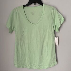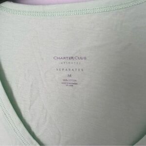 Charter Club Women’s Deep V Neck Short Sleeve Green Cotton Pajama Top M