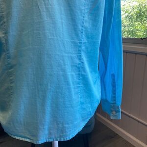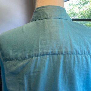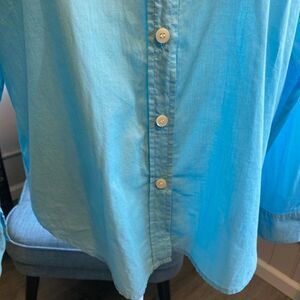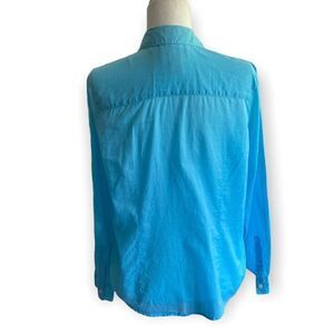 Charter Club Womens Turquoise Button Front Cotton Tailored Blouse SZ 10
