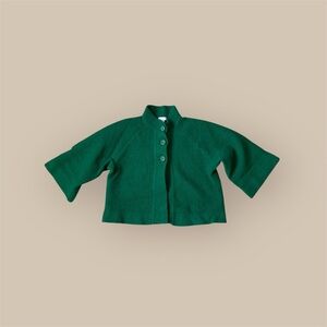 Charter club 100% merino wool 3/4 sleeve button up cardigan size xl. In good precondition. A couple holes have been sewn back together as shown in pictures. Super cute little cardigan and a beautiful green color.