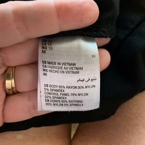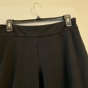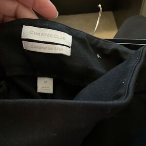 This is a pair of charter club, Cambridge, slim size 10 black pants. No pockets. The pocket seen in the pictures are fake so not functional. Waste 16 1/2. Stretches to 18 1/2. Inseam 28.