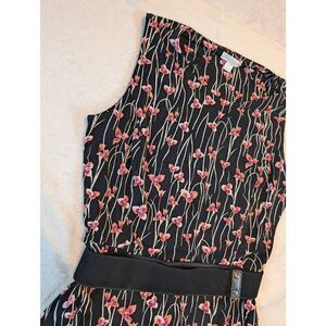 Style:. Fit and flare knee length stretchy floral dress with belt