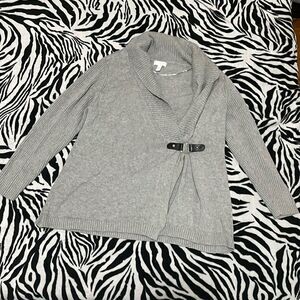 Charter club grey long sleeved faux leather buckle cardigan size 1x