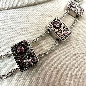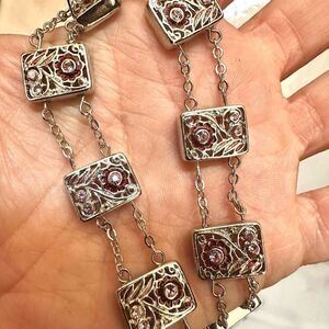 Charter club silver tone and pink rhinestone necklace