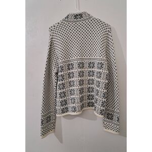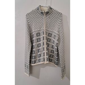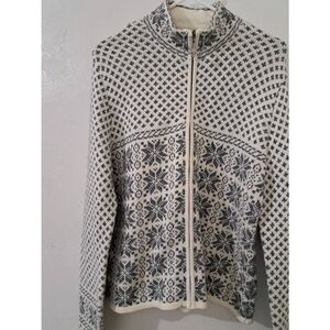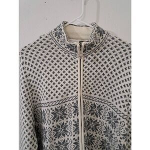 Charter club womens large fairisle wool snow flakes full zip sweater gray white