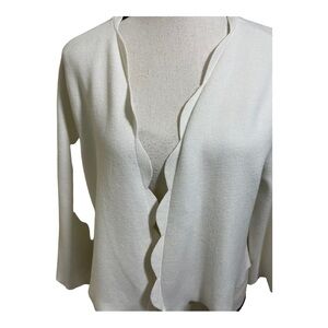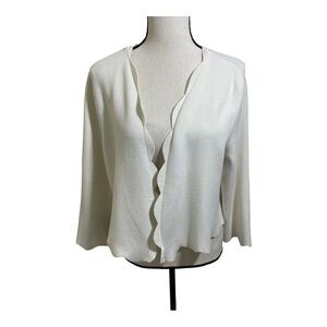 Charter Club womens open front cardigan crop rayon scallop design. Size Large.