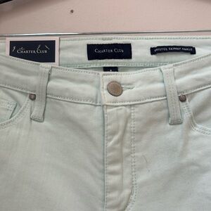 Charter club women’s size 6 Bristol skinny ankle jeans mint green Eyelet Hem NWT