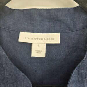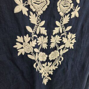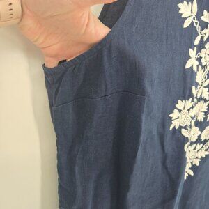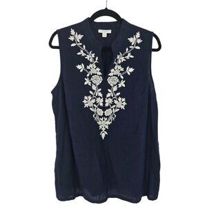 Charter club womens size Large navy blue linen floral embroidered sleeveless top