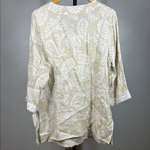 Charter Club Cream Paisley Relaxed Tunic Top 100% Linen