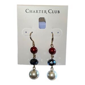 Charter Club Gold-Tone Bead Imitation Pearl Multicolor Red White Blue Earrings