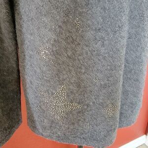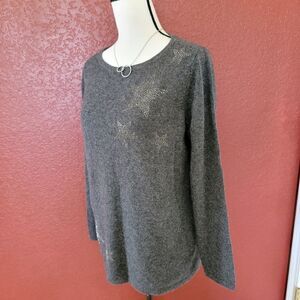 Cozy gray sweater with star embellishments. Crew neck design. Perfect for casual wear. 100%Cashemir