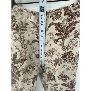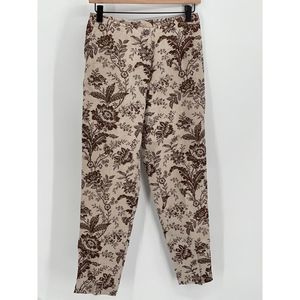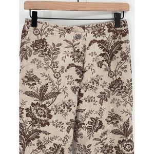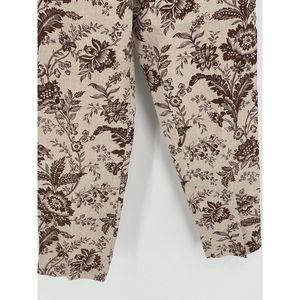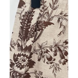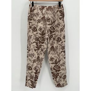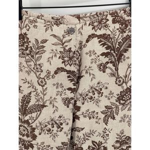 Charter Club Linen Pants Women 4 Petite Tan Brown Floral High Waist Tapered