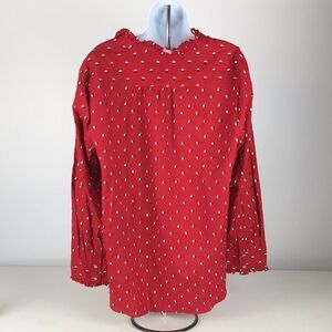 Charter Club's printed button up has an updated look and feel with its banded neckline and ruffle trim for a fun finish.
