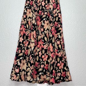 Charter Club Silk Floral Print Round Neck Sleeveless Maxi Dress Black Size 8