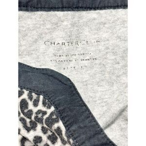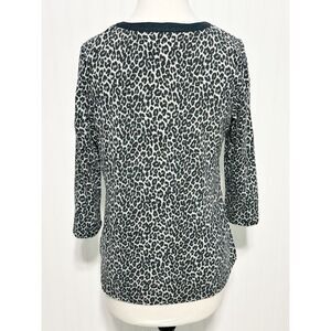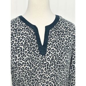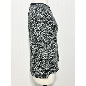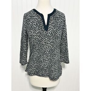 Charter Club Women's Leopard Print Split Neck 3/4 Sleeve Top Black Size Large
