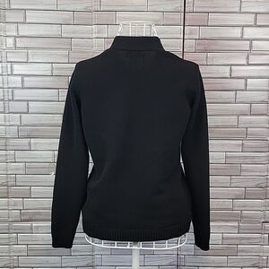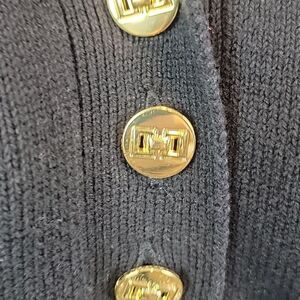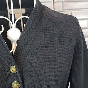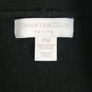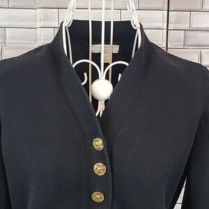 Cotton nylon blend tight ribbed knit pullover sweater by Charter Club with long sleeves, straight hemline, and a v-neckline with gold button accents. Great pre-owned condition.