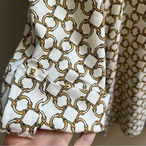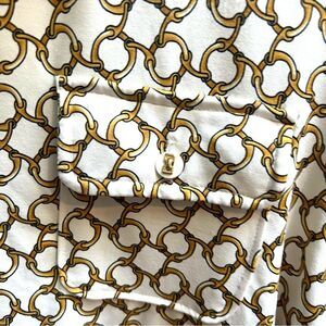 Elegant shirt with a chain equestrian pattern. Features cream and gold tones. Perfect for a sophisticated look.