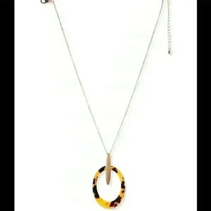 Give your ensemble a uniquely chic finish with the tortoise-look pendant of this Charter Club necklace.