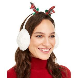 Show your festive side while staying warm with Charter Club's cable knit reindeer earmuffs.