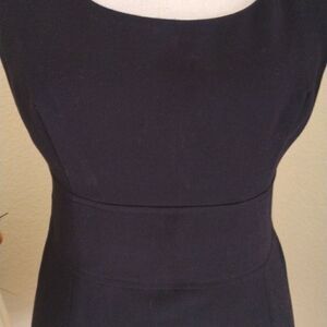 The perfect little black dress. Washable woven fabric. Fitted bodice, wide waistband. Straight skirt. Back zip, fully lined. Size 8 measures 38 at chest, 30 at waist, 40 at hips. 41.5 long from shoulder to hem. Make this one your own with accessories. A different dress every day.