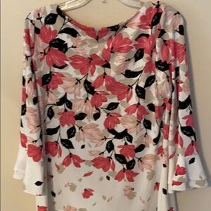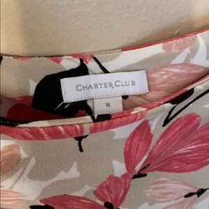 Charter Club Floral Scoop Neck 3/4 Sleeve Blouse
