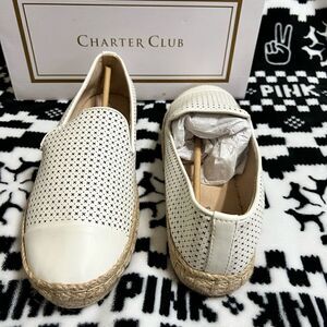 Striped with beachy appeal, the Jonii flats by Charter Club add breezy lift to any look with a fun espadrille platform