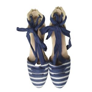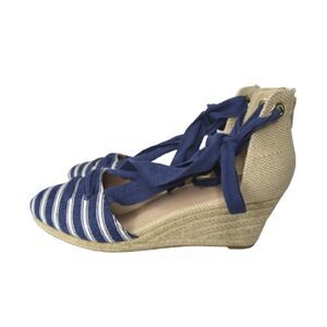 Charter Club Maritzaa Navy White Espadrilles Wedge Platform Sandals SZ 9.5