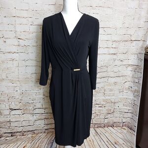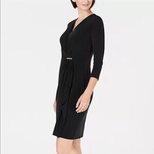 Charter Club Petite Faux-Wrap Dress, Deep Black Size PXL