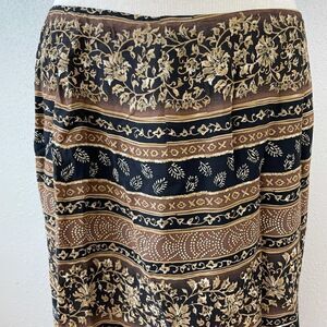 Beautiful brown wrap style skirt by Charter Club measuring 16 inches at the waist laying flat and 22 inches in length.