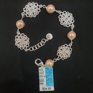 Charter Club Silver Tone Pink Pearl Tower Bracelet