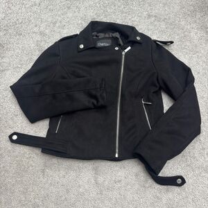 Chartou Faux Suede Motorcycle Jacket womens XS Black Asymmetrical Zip Biker Moto