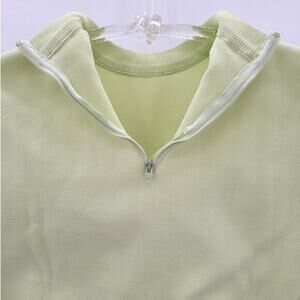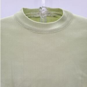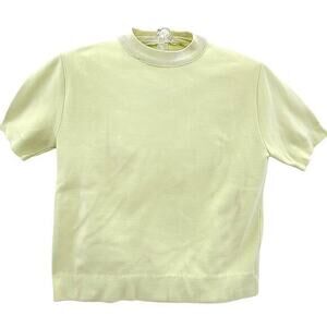 Chartreuse Green Vintage Knit Zipper Back Short Sleeve Mock Neck Sweater