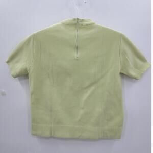 Add a pop of color to your wardrobe with this chartreuse green vintage knit sweater. Featuring a stylish mock neck and short sleeves, this sweater is both chic and comfortable. The zipper back detail adds a unique touch, making it easy to wear and perfect for layering. Crafted from a soft knit fabric, this piece is ideal for adding a retro flair to your everyday outfits. Embrace vintage fashion with this standout sweater.