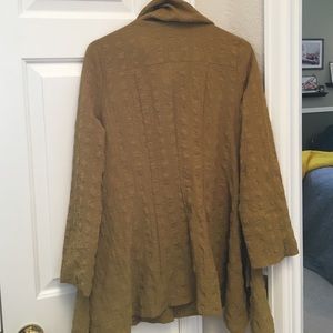 This fun lightweight jacket goes with anything - it is light and my favorite look is to wear it with leggings, tall boots and a turtleneck.