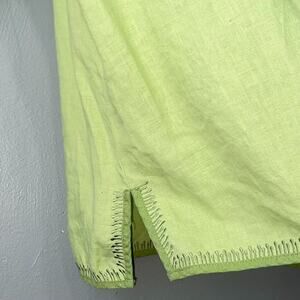 Chartreuse Linen Button Up Shirt Womens Size 14 Green Embroidered Beachy Chic