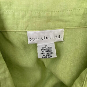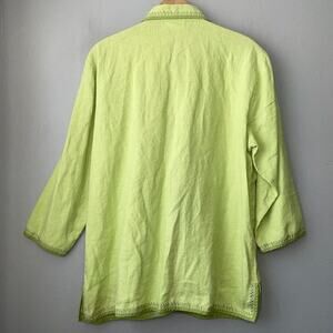 Pursuits, ltd 3/4 sleeve bright green 100% linen embroidered button up shirt in Excellent pre-owned condition!