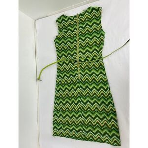 Chartreuse Y2K Donna Rae New York Dress Green Stripe Retro Belted Small Twee