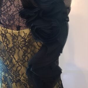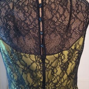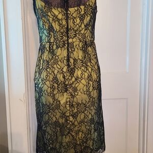 Chartreuse and Black Lace cocktail dress Teri Jon size 4