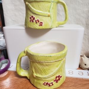 Chartreuse boho mugs with pink flowers