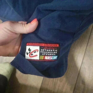 This vintage Chase Authentics sweatshirt is a must-have for any NASCAR fan. The navy blue color and solid pattern make it a versatile addition to any wardrobe. With a V-neckline and long sleeves, it's perfect for cooler weather.