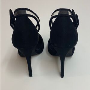 Sizing: True to size. - Pointed toe - Synthetic or textile construction - Open vamp - Adjustable ankle strap with buckle closure - Lightly padded footbed - Stiletto heel - Approx. 4.5" heel - Imported