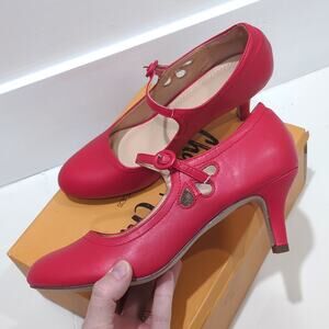Chase & Chloe Kimmy Low 21 Red Mary Jane Heels Women's size 8 Round Toe Cutout