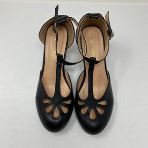 Chase + Chloe Kimmy T-Strap Pumps Black Retro