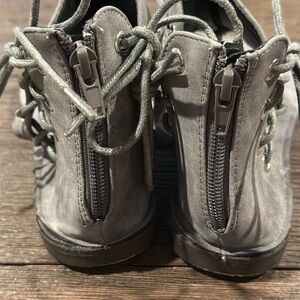 Chase & Chloe Valley gray side tie faux leather sandals, sz 6, NWOT
