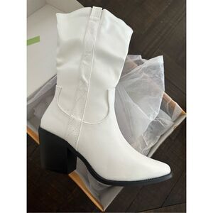 Chase + Chloe White With Black Accent Calf Justine Boot Size 8. New in box.