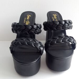 Chase Chloe Women's Chunky Platform Heeled Sandal Braided Party Black Size7 $79