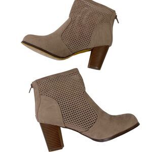Chase & Chloe 10M tan Booties with faux suede uppers and stacked wooden heel