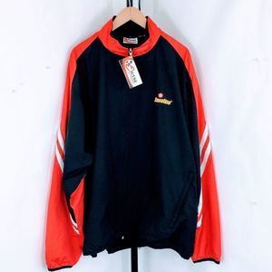 Chase Authentics Deadstock NASCAR Chip Ganassi Car #42 Havoline Full Zip Jacket. This 2004 Deadstock jacket is constructed from a 100% polyester shell with color blocked sleeves and collar with a mesh knit lining. Features include an embroidered Texaco/Havoline chest logo, embroidered #42 at rear neckline, stitched sleeve striping, welt front hand warmer pockets and full zip front with Chase Authentics logo zipper pull.