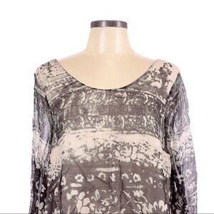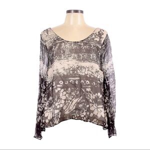 Chaser 100% Silk Long Sleeve Scoop Neck Boho Open Back Floral Blouse Size M