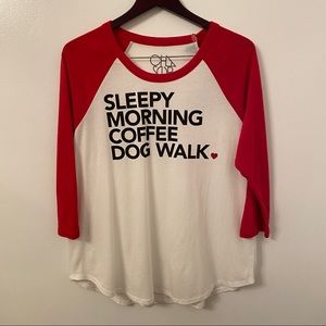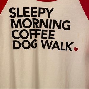 Multicolor Women's Sleepy Morning Graphic Baseball Tee Shirt. New with tags -0961