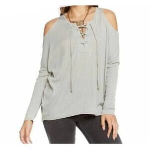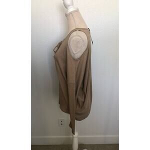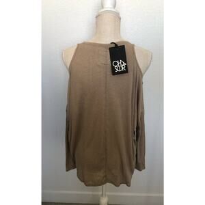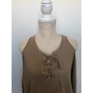 Chaser Beige Vintage Collection Lace Up Cold Shoulder Dolman Top - M